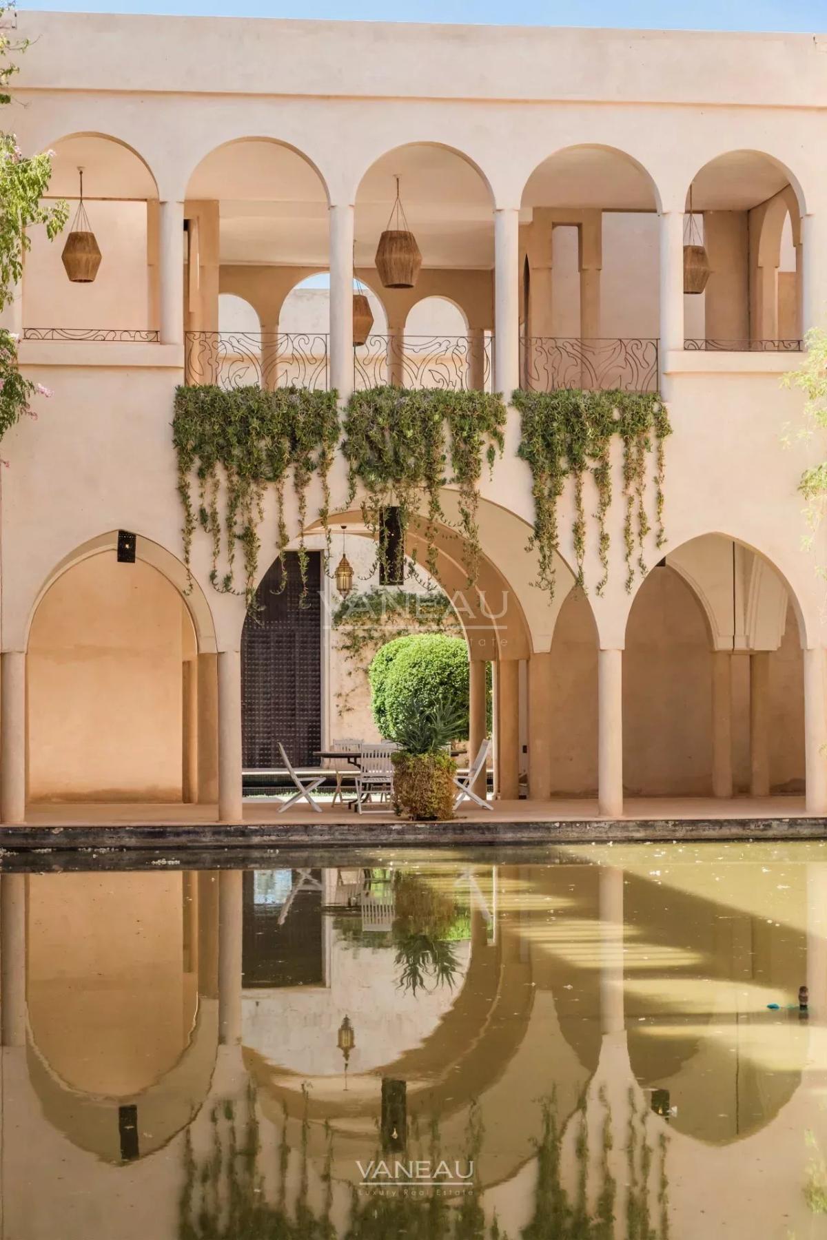 PALAIS À VENDRE AU COEUR DE LA PALMERAIE DE MARRAKECH Au cœur de la Palmeraie de Marrakech, VANEAU MAROC, agence immobilière à Marrakech, vous présente un magnifique palais à vendre. Érigé sur 4 hectares de terrain, dont 12 000m2 encore vierges à développer, cette propriété bénéficie d'une situation idéale, en plein cœur de la Palmeraie de Marrakech, dans une zone urbaine, à proximité du Palais Ronsard. Le domaine se compose de 6 villas indépendantes, chacune comprenant 4 suites : une au rez-de-chaussée et trois à l'étage, avec la possibilité d'en aménager une cinquième. Ce palais à vendre est parfait pour un investisseur ou une société événementielle souhaitant organiser des événements ou gérer une maison d'hôtes. Il offre un énorme potentiel de développement. Tous nos biens sont vendus avec titre de propriété. N'hésitez pas à prendre contact dès maintenant avec notre agence immobilière VANEAU MAROC afin de planifier une visite de cette propriété.